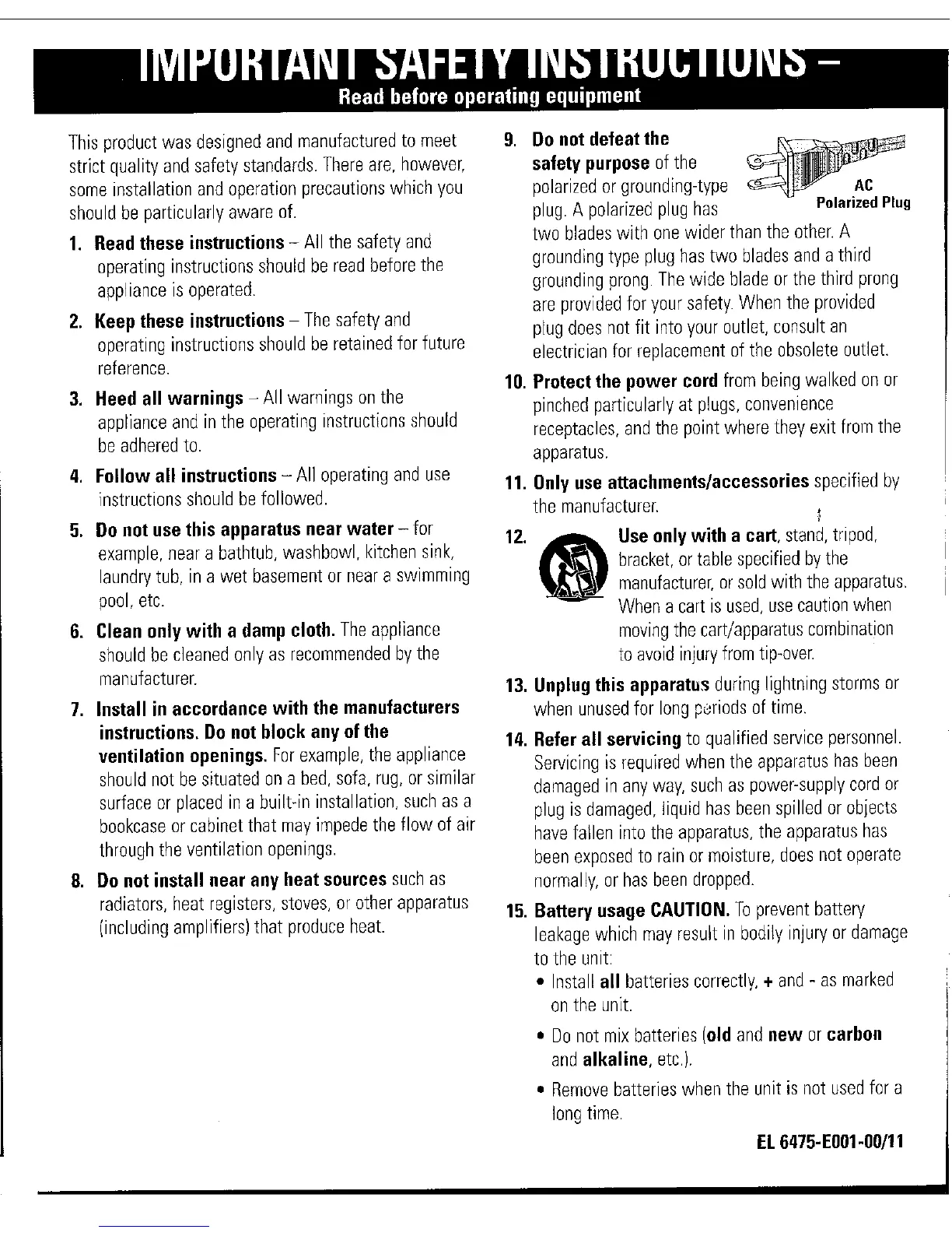 Philips AJ3953 - Important Safety Instructions; General Usage Precautions; Installation and Environment Safety; Electrical and Maintenance Safety