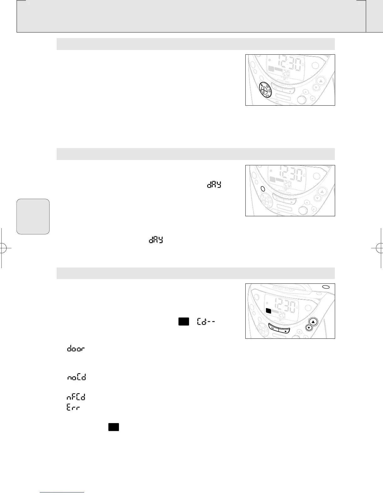 • ' ' verschijnt als er geen cd in de speler zit of als de cd