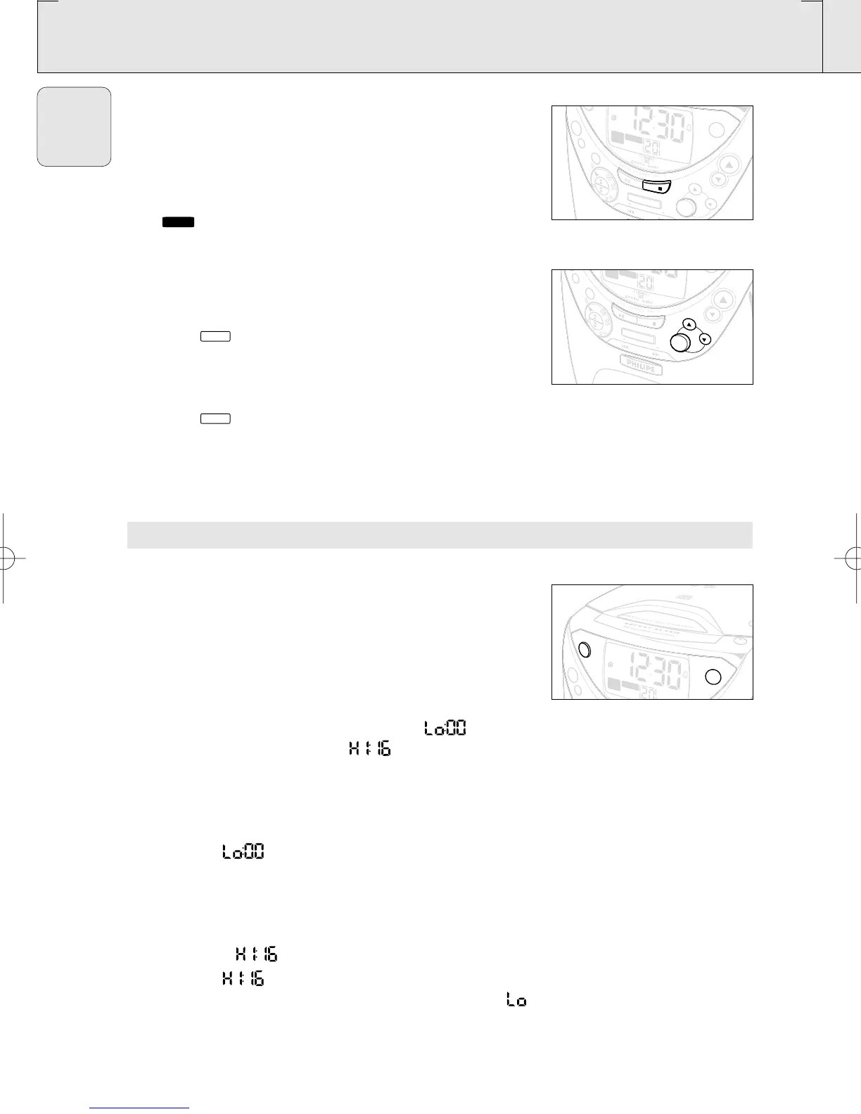 Two different alarm times ALARM 1 or 2 can be set in the CD,