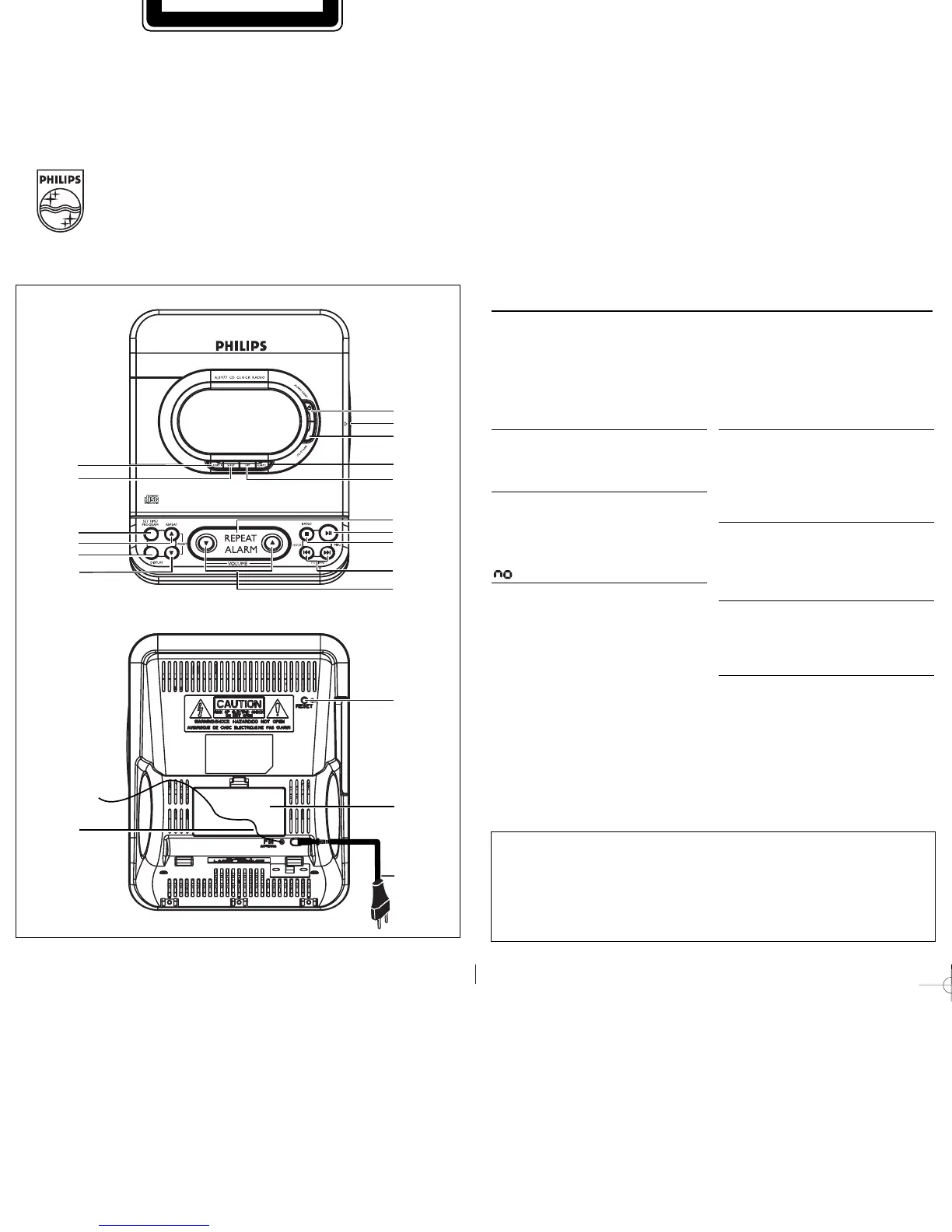WARNING: Do not open the set as there is a risk of electric shock. Under no circum-