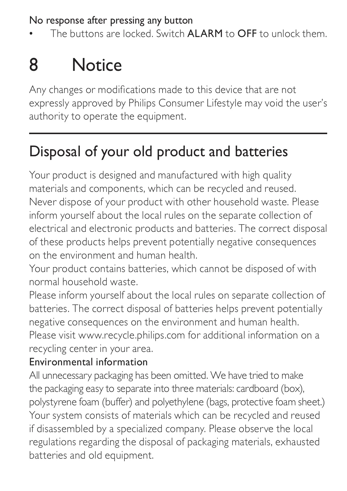 expressly approved by Philips Consumer Lifestyle may void the user’s