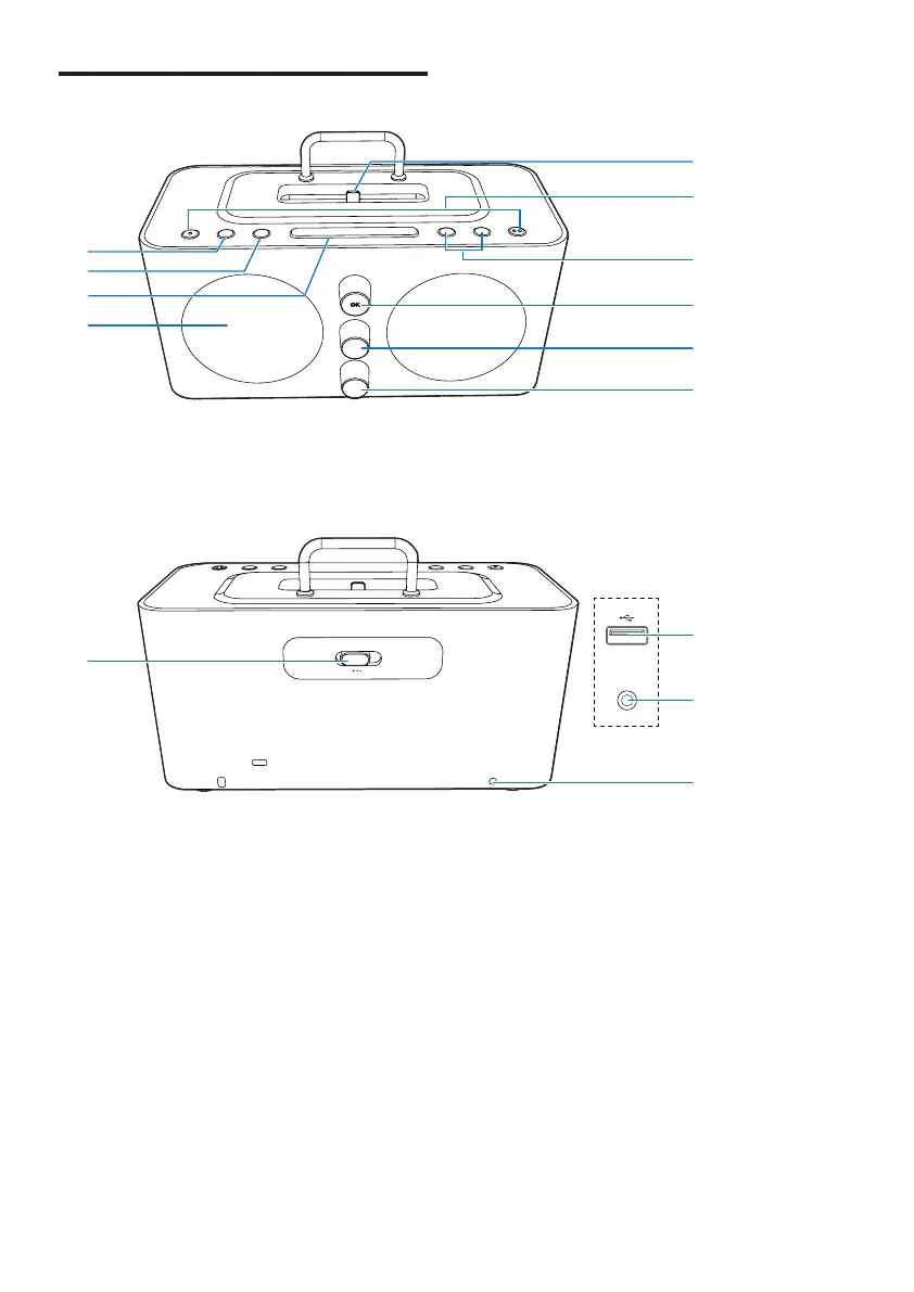 • Press to select a source.(DOCK/FM/