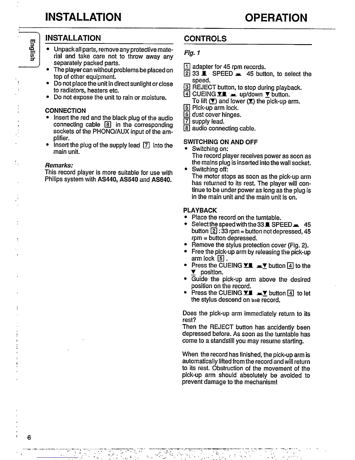 Philips AK 540 - Installation and Connection; Connection Details; Installation Remarks; Operation Guide