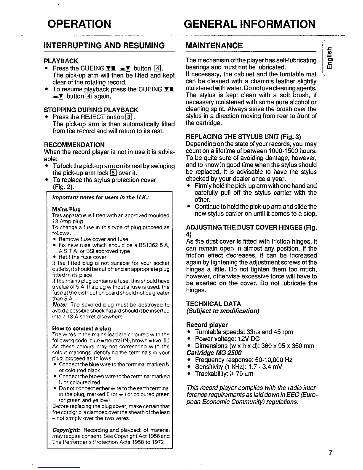 Philips AK 540 - Interrupting and Resuming Playback; Stopping During Playback; Usage Recommendations; UK Specific Instructions