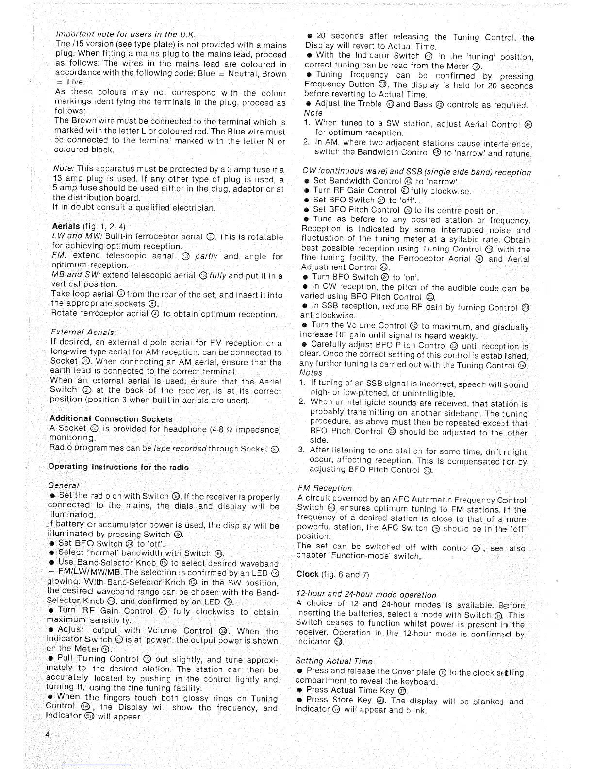Philips AL 990 - UK Mains Plug Fitting Note; Aerials; Additional Connection Sockets; Radio Operation
