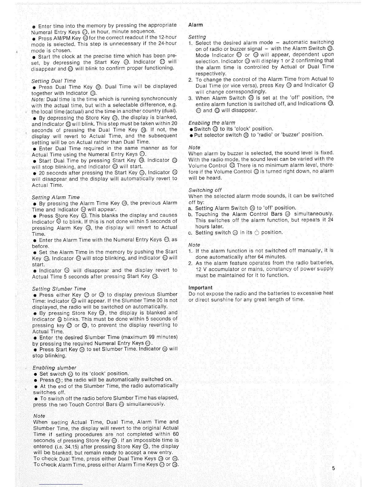 Philips AL 990 - Dual Time Setting; Alarm Time Setting; Slumber Time Setting; Slumber Function