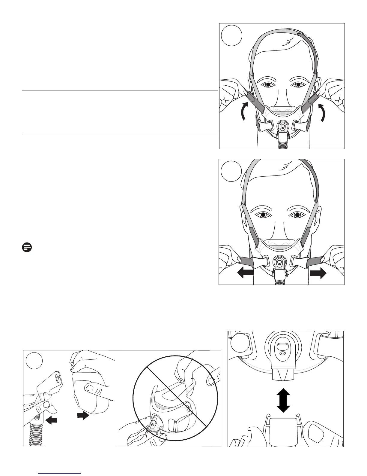 • Ajuste la correa de la coronilla del arnés para