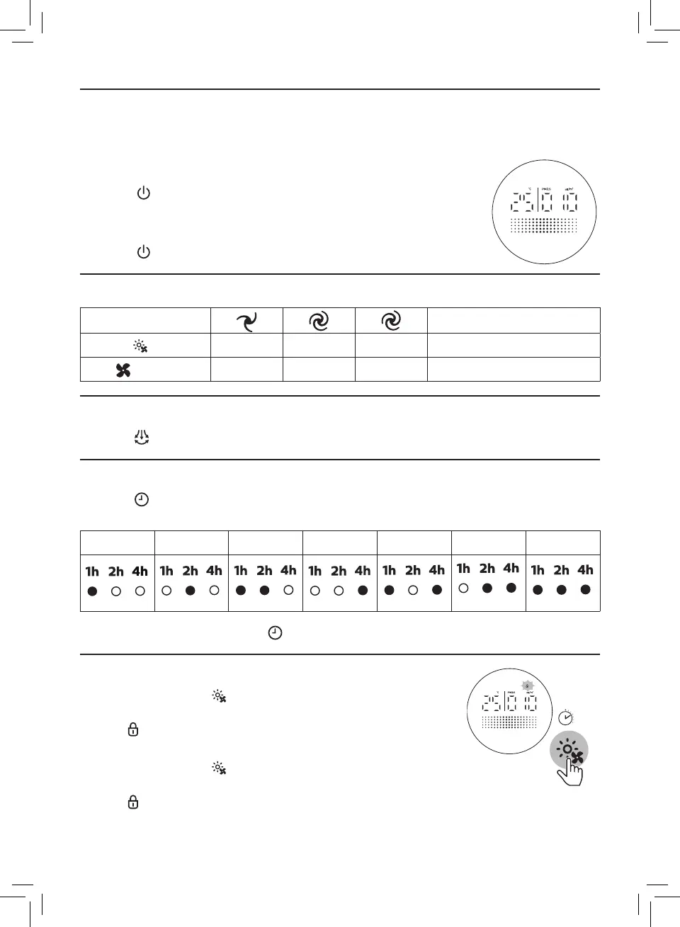 Press the button repeatedly to set operating hours of the appliance. The timer is available