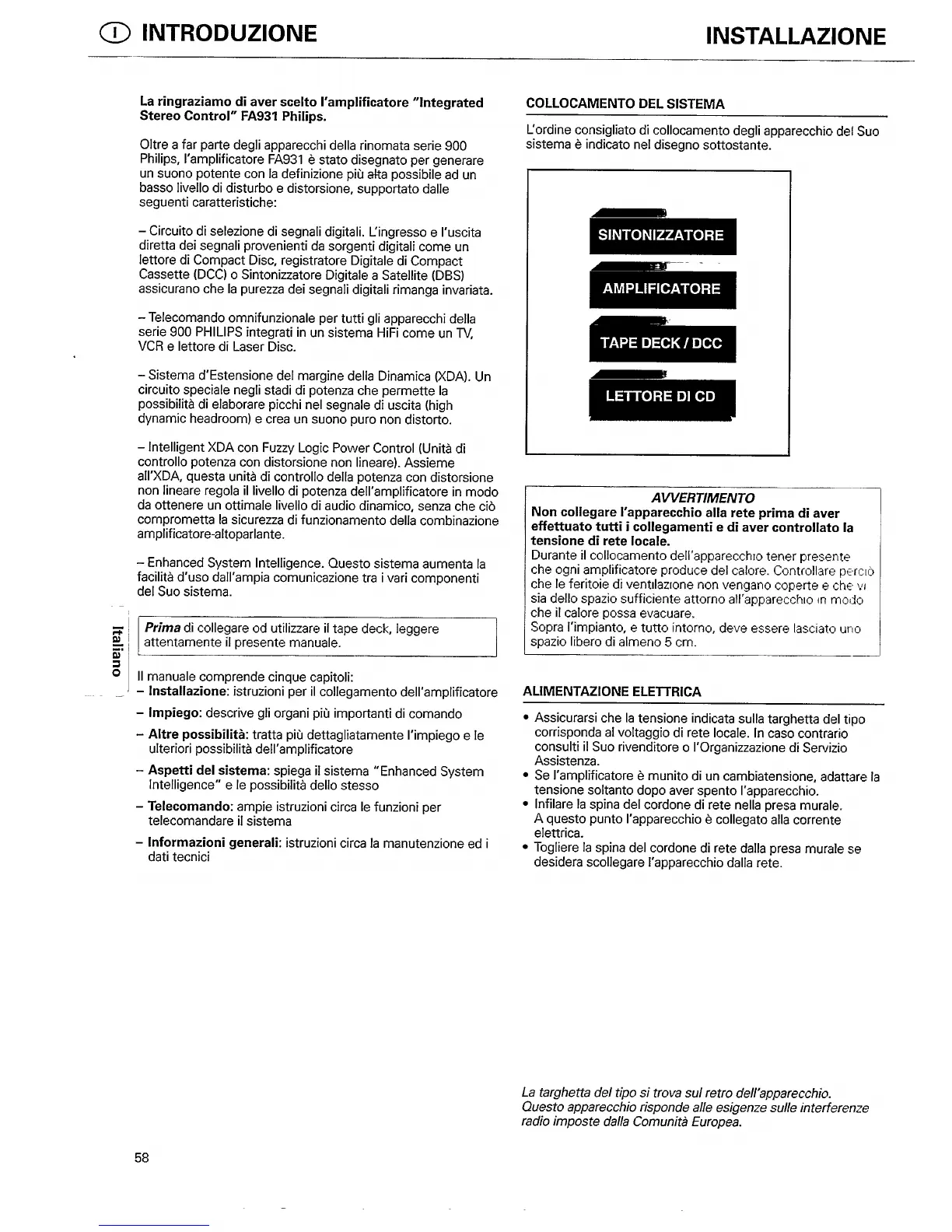 Philips Amplifier - Introduction and Installation; Electrical Power Connection