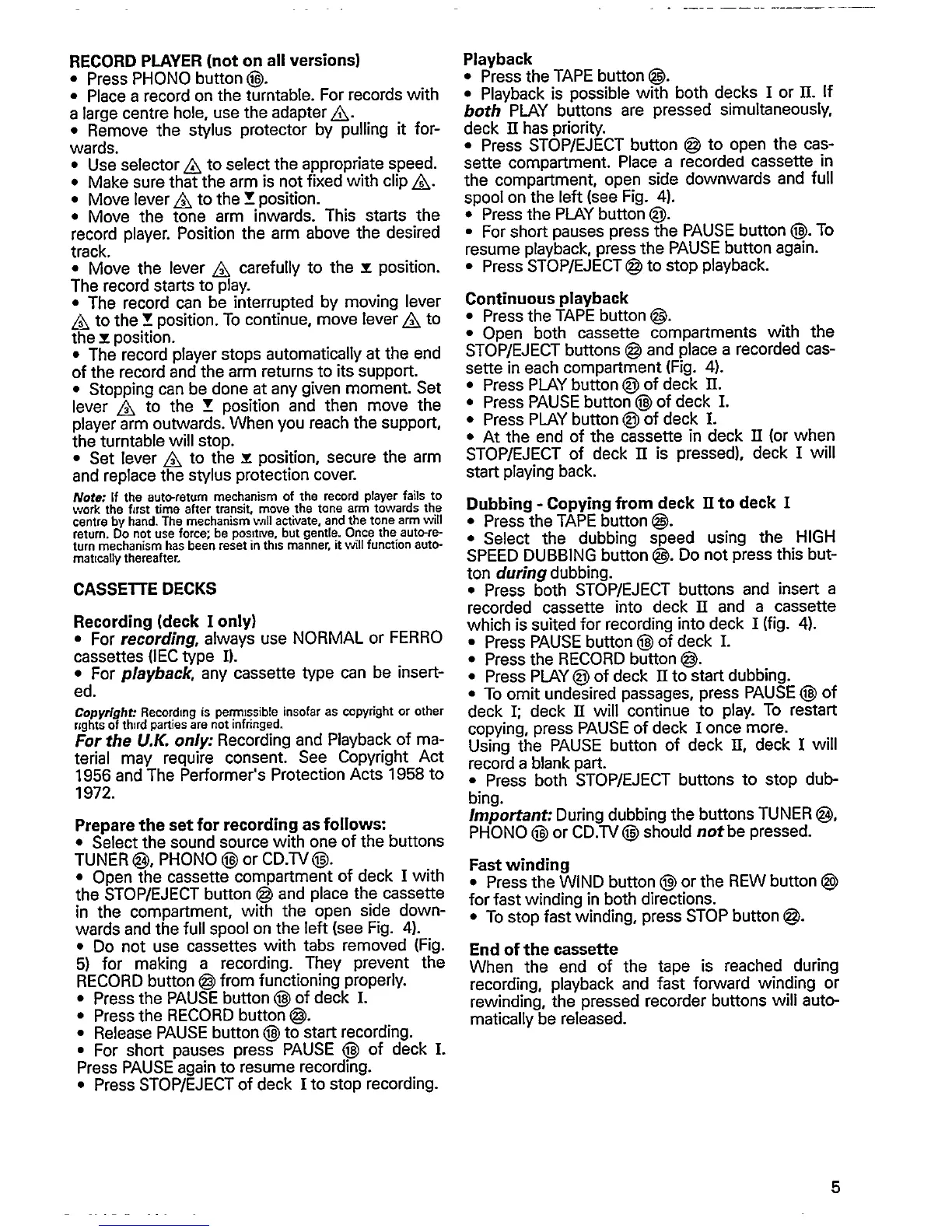 Philips AS 401 - Record Player; Cassette Decks; Playback; Continuous Playback