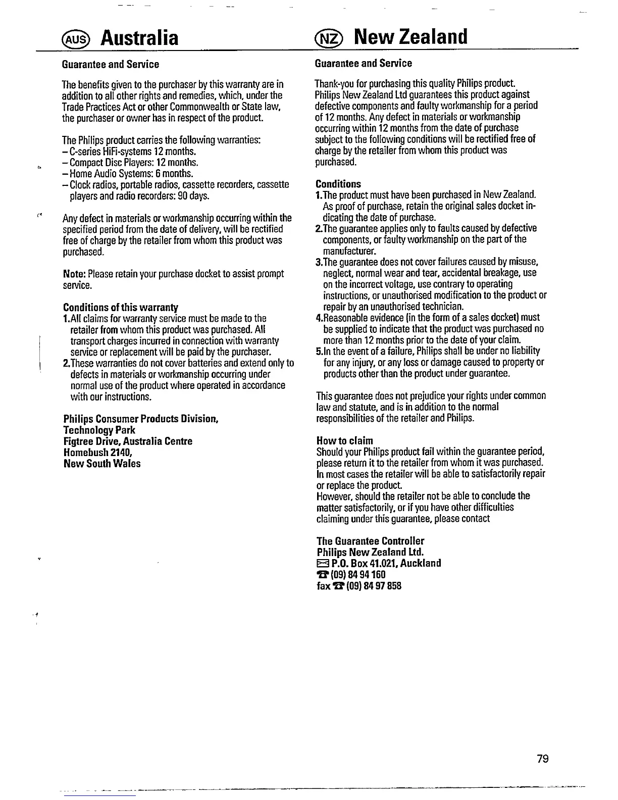 Philips AS 640 - WARRANTY AND SERVICE INFORMATION; AUSTRALIAN WARRANTY TERMS; NEW ZEALAND WARRANTY TERMS
