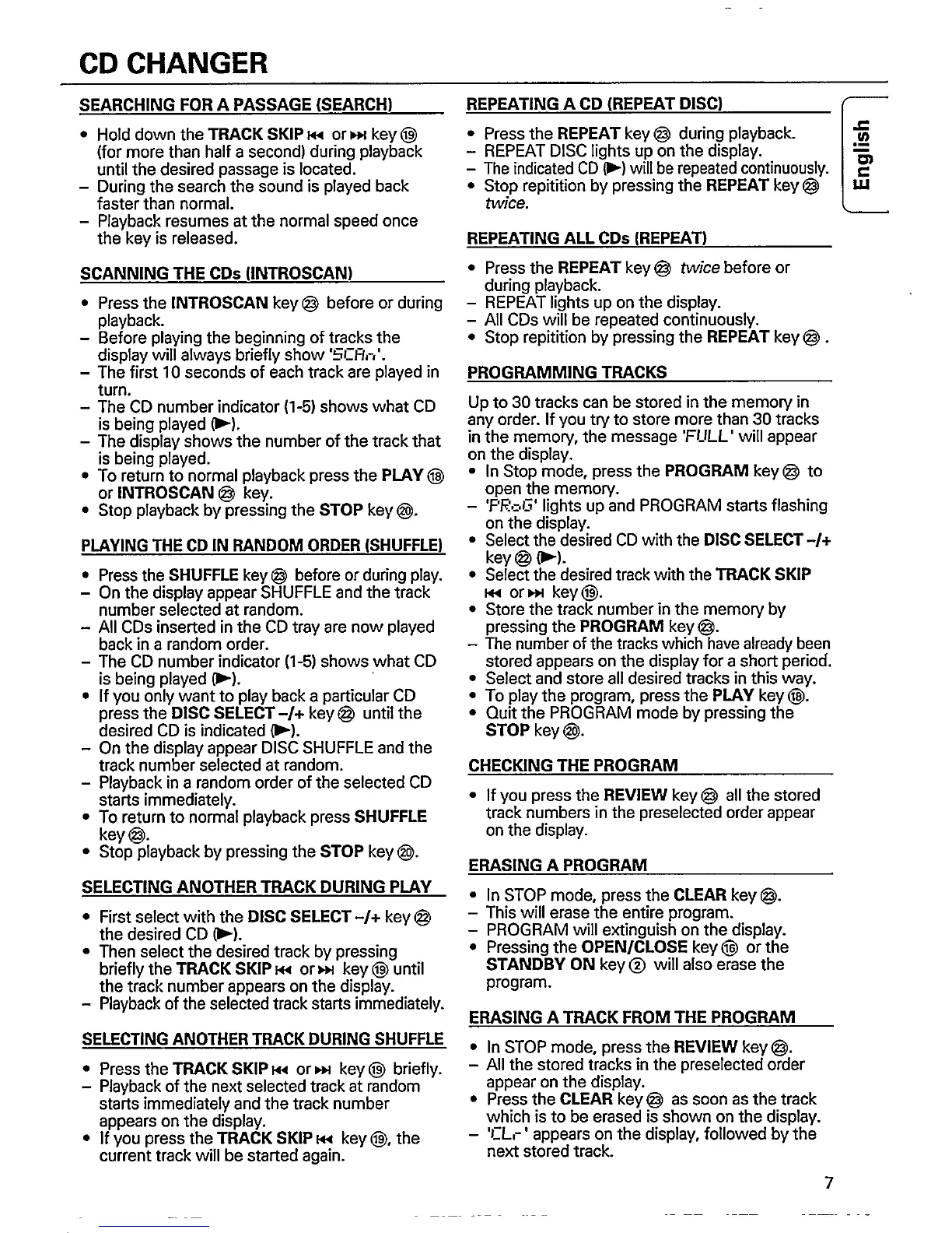 Philips AS 655 - Searching for Passages on CD; Scanning CD Tracks (Introscan); CD Shuffle Playback; Changing Tracks During Play