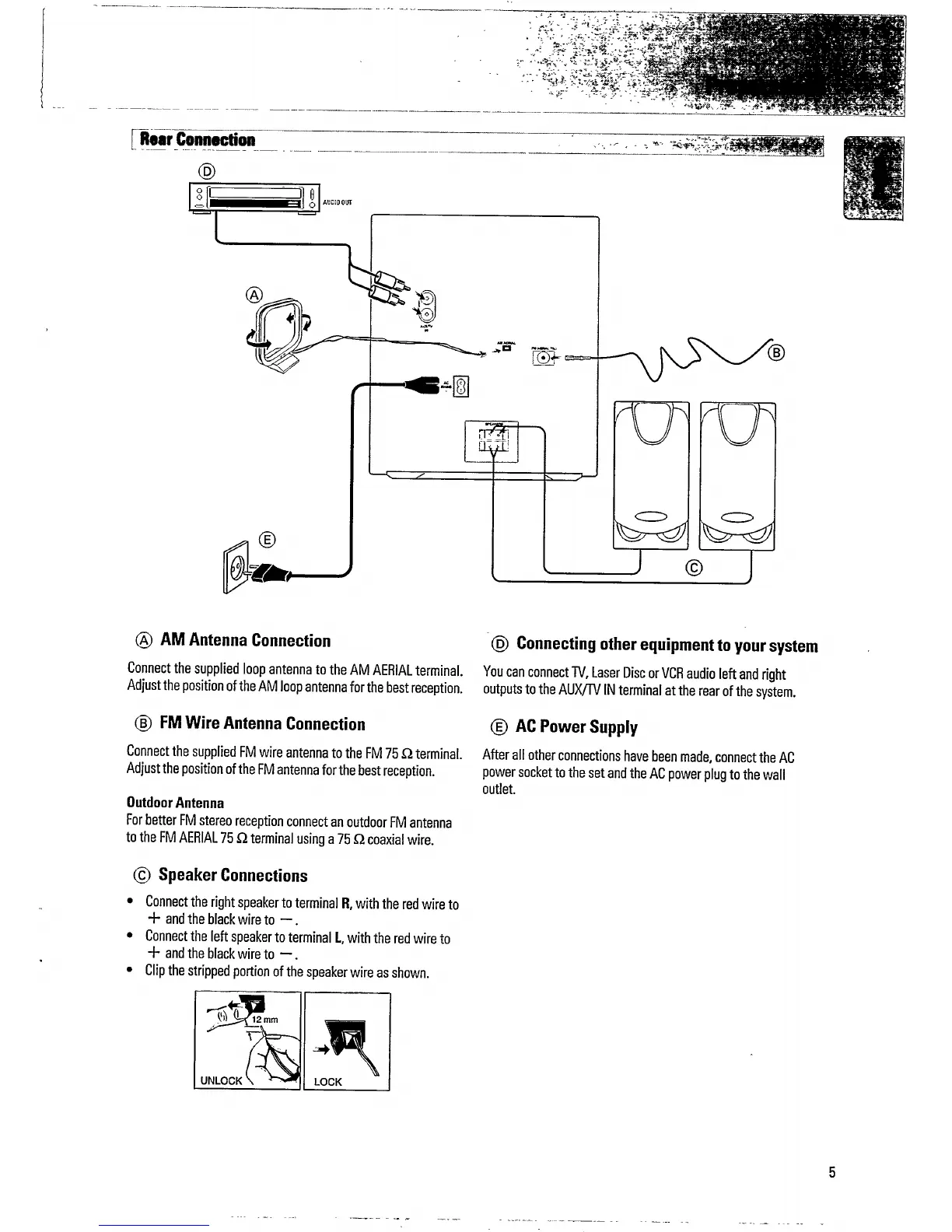 Philips AS 665C - Rear Connections; Antenna Connections; Speaker and External Connections; AC Power Supply Connection