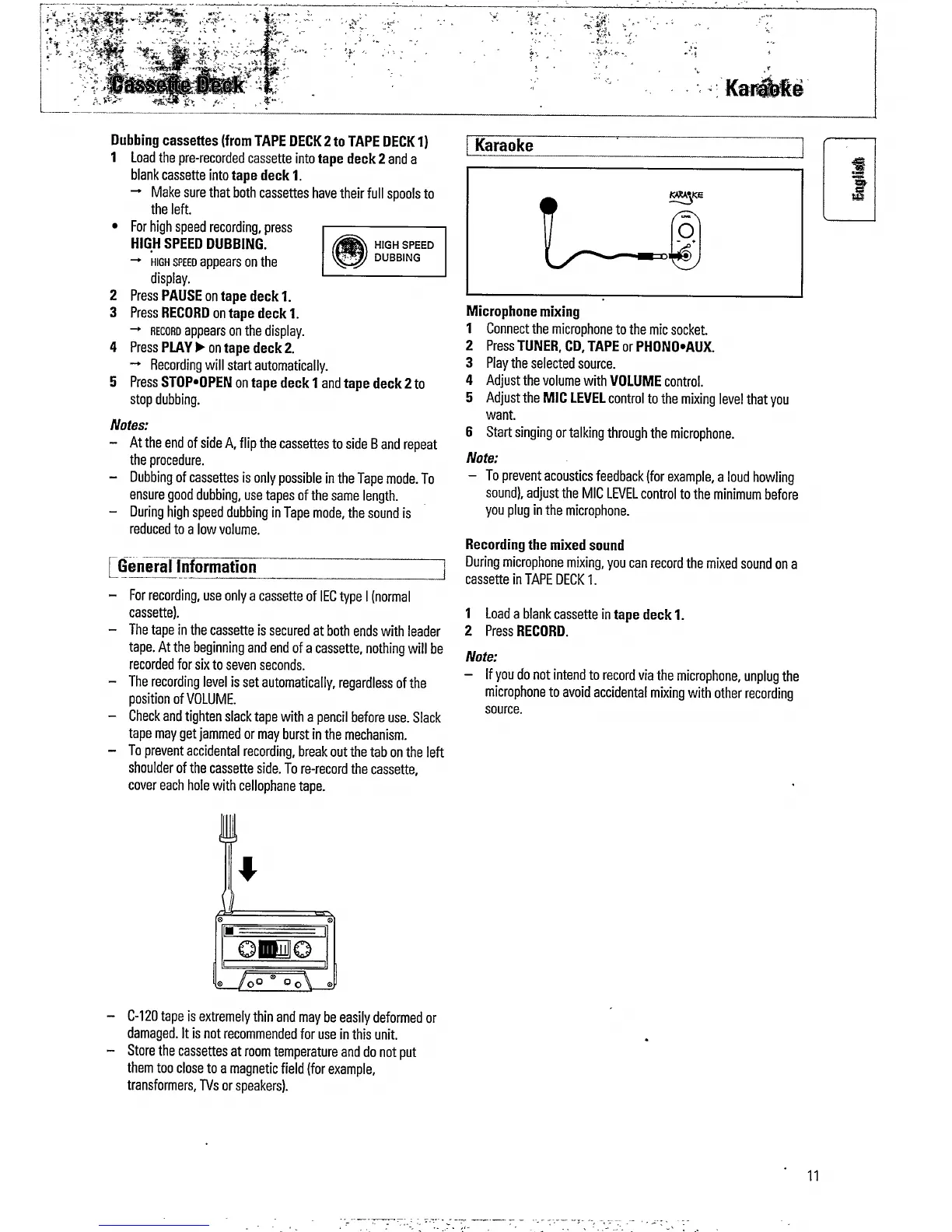 Philips AS 765C - Karaoke; Dubbing Cassettes; Microphone Mixing; Recording the Mixed Sound