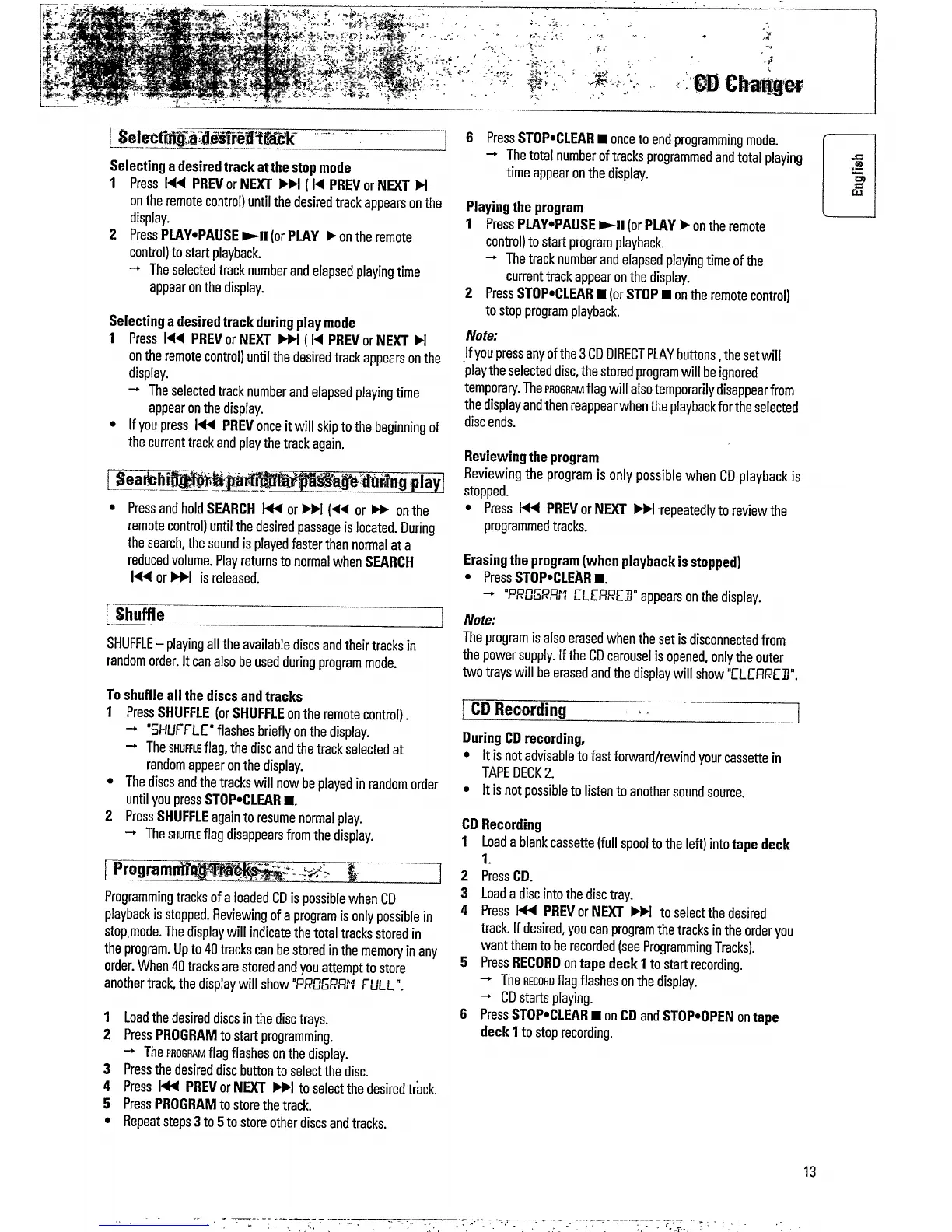 Philips AS 765C - Selecting a Desired Track; Searching for a Particular Passage During Play; Shuffle; CD Recording