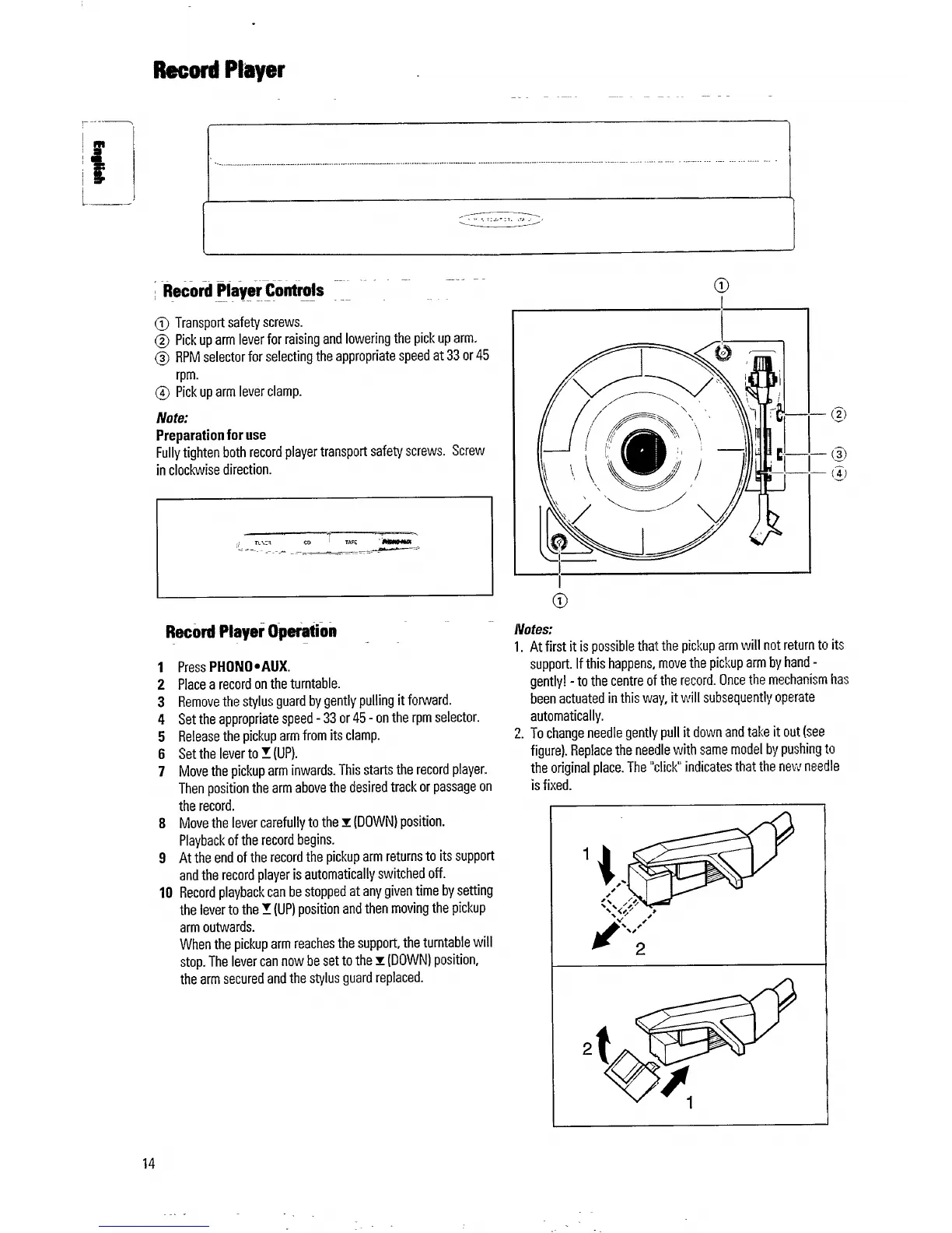 Philips AS 765C - Record Player; Record Player Controls; Record Player Operation