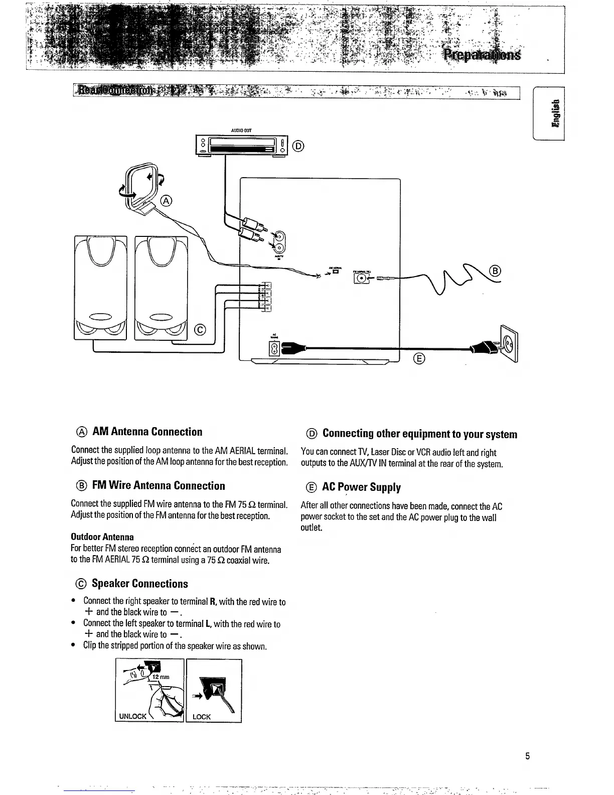 Philips AS 765C - AM Antenna Connection; FM Wire Antenna Connection; Speaker Connections; AC Power Supply