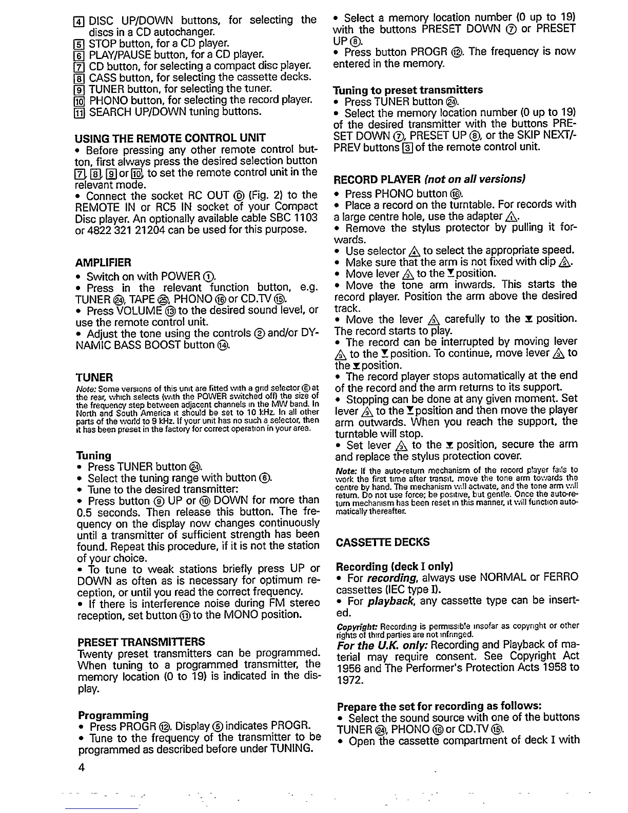 Philips AS 9414 - USING THE REMOTE CONTROL UNIT; AMPLIFIER; TUNER; Tuning