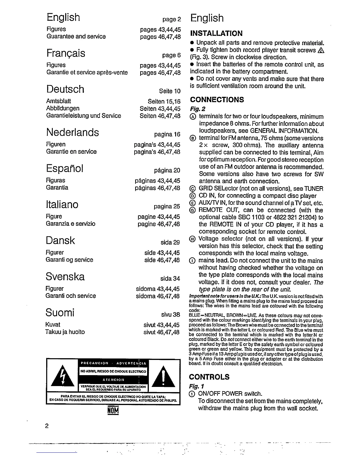 Philips AS 9500 - Installation Guide; Connection Terminals; Power Control; ON;OFF Power Switch