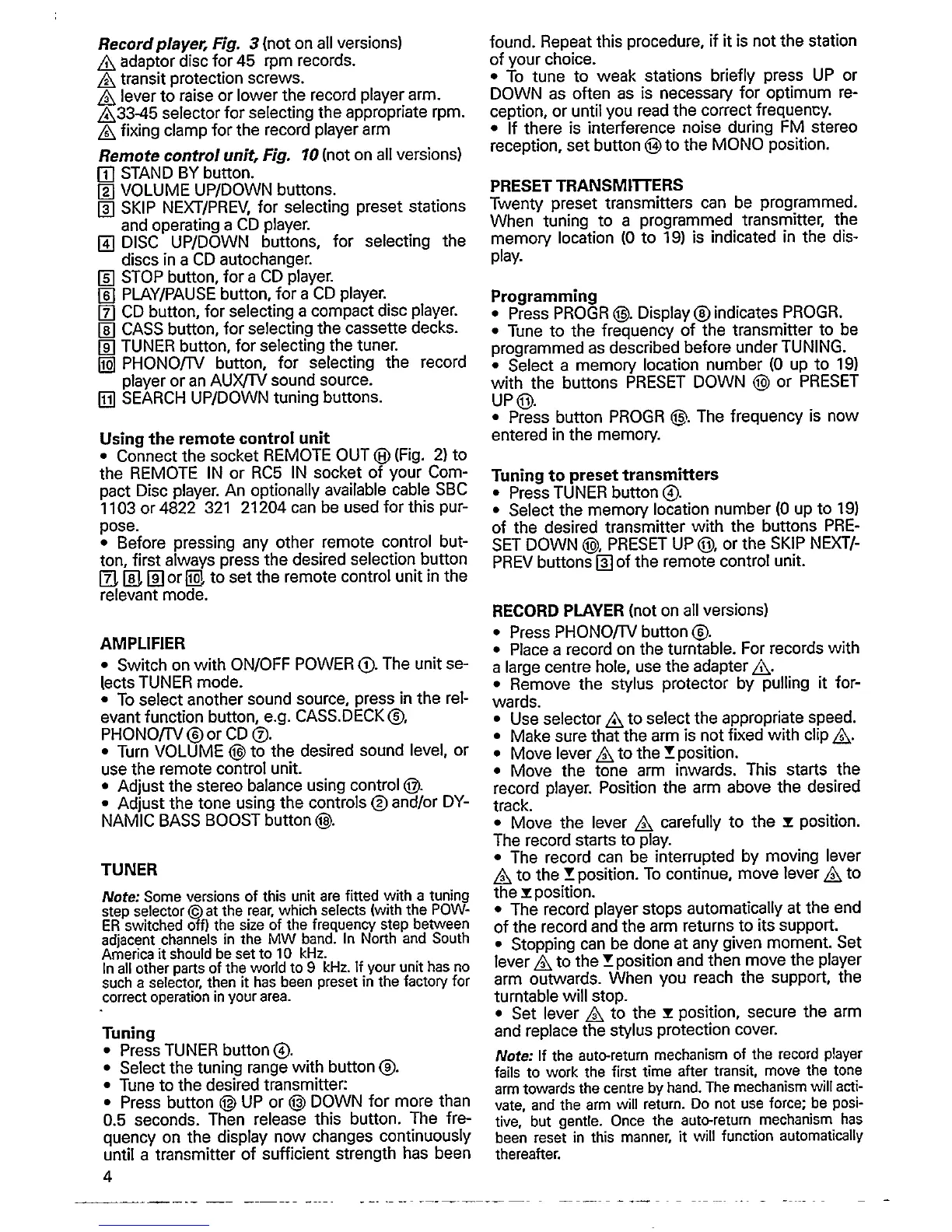 Philips AS 9510 - Amplifier Operations; Tuner Functions; Tuning Procedures; Preset Transmitter Programming