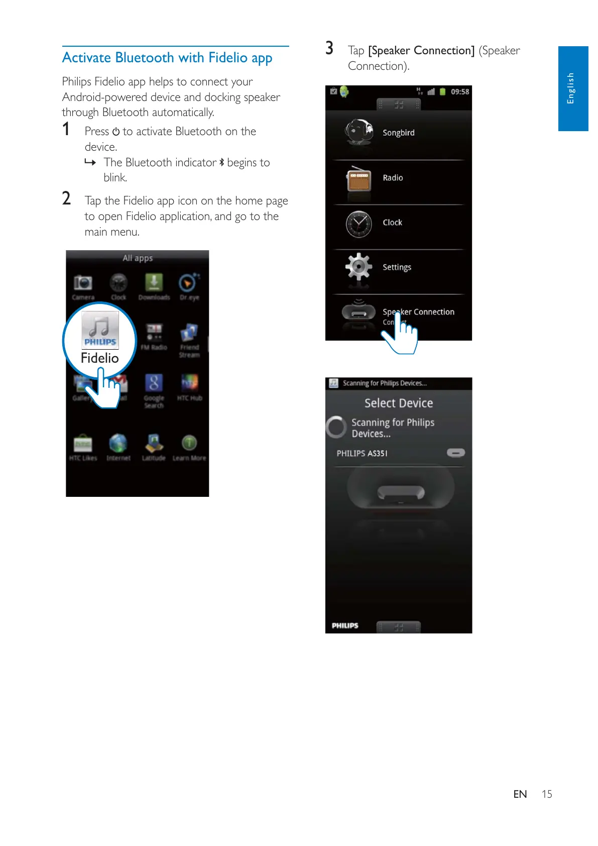 2 Tap the Fidelio app icon on the home page