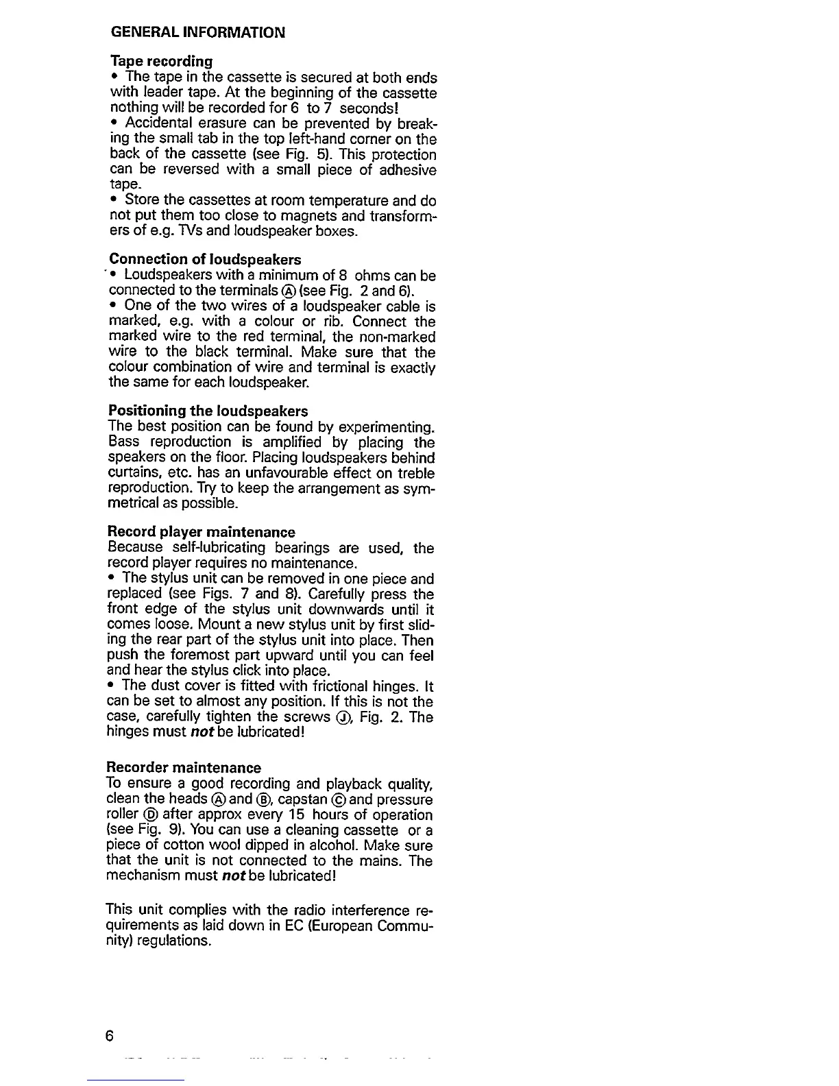 Philips AS405 - General Information; Tape Recording; Connection of Loudspeakers; Positioning the Loudspeakers