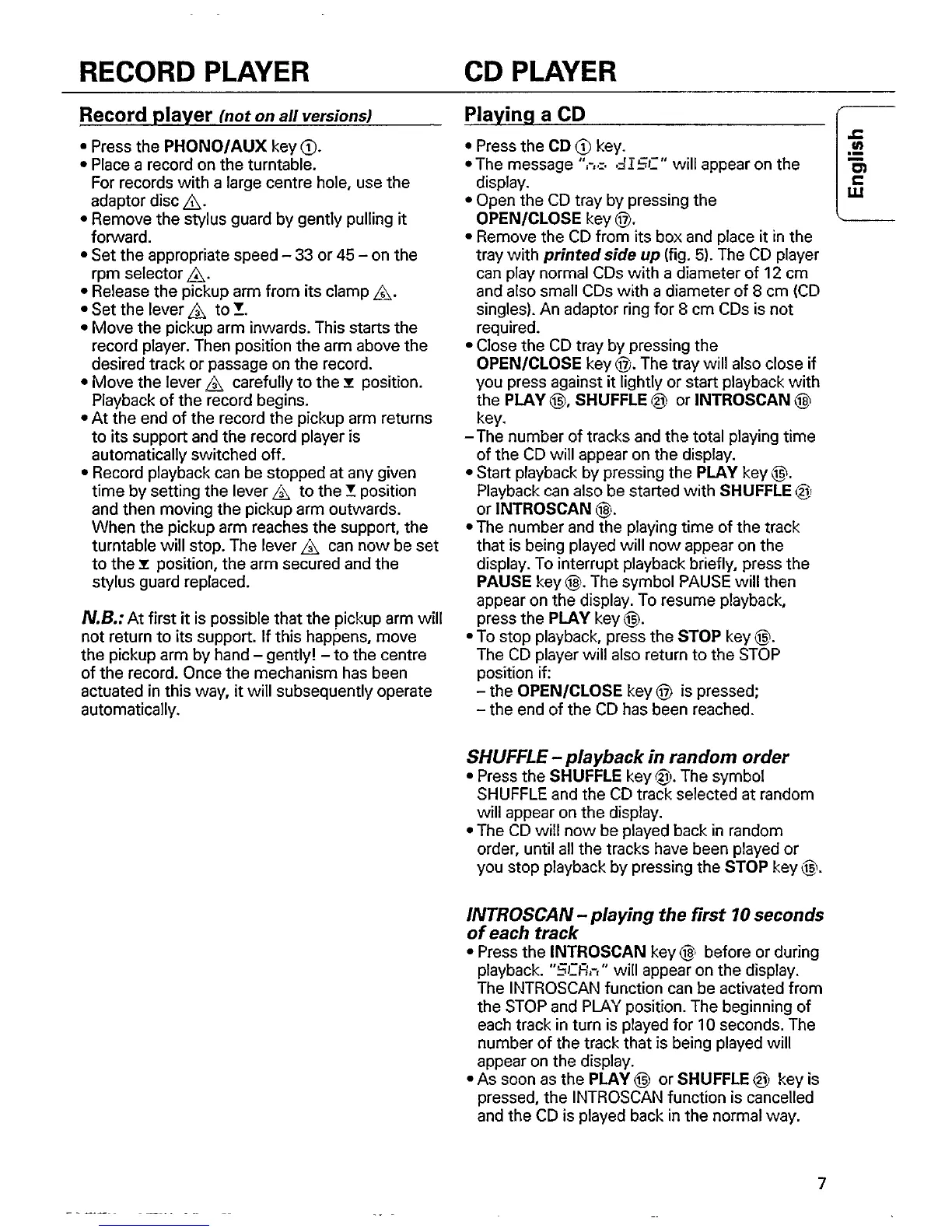 Philips AS445/25 - Record Player; Operating the Record Player; CD Player; Playing a CD