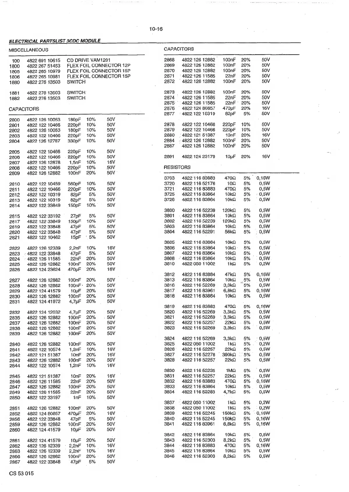 Philips AS660C/41 - Electrical Partslist