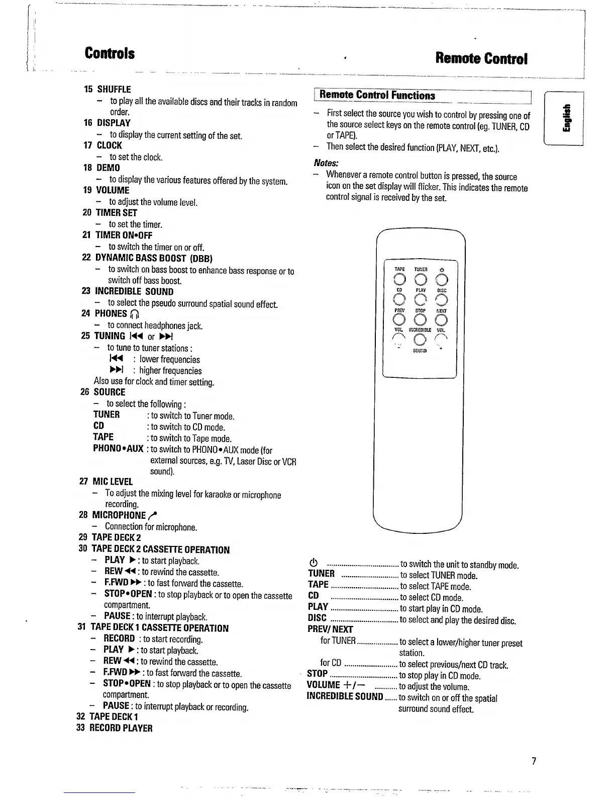 Philips AS665C/22 - System Controls and Remote Operation; Front Panel Control Functions; Remote Control Functions