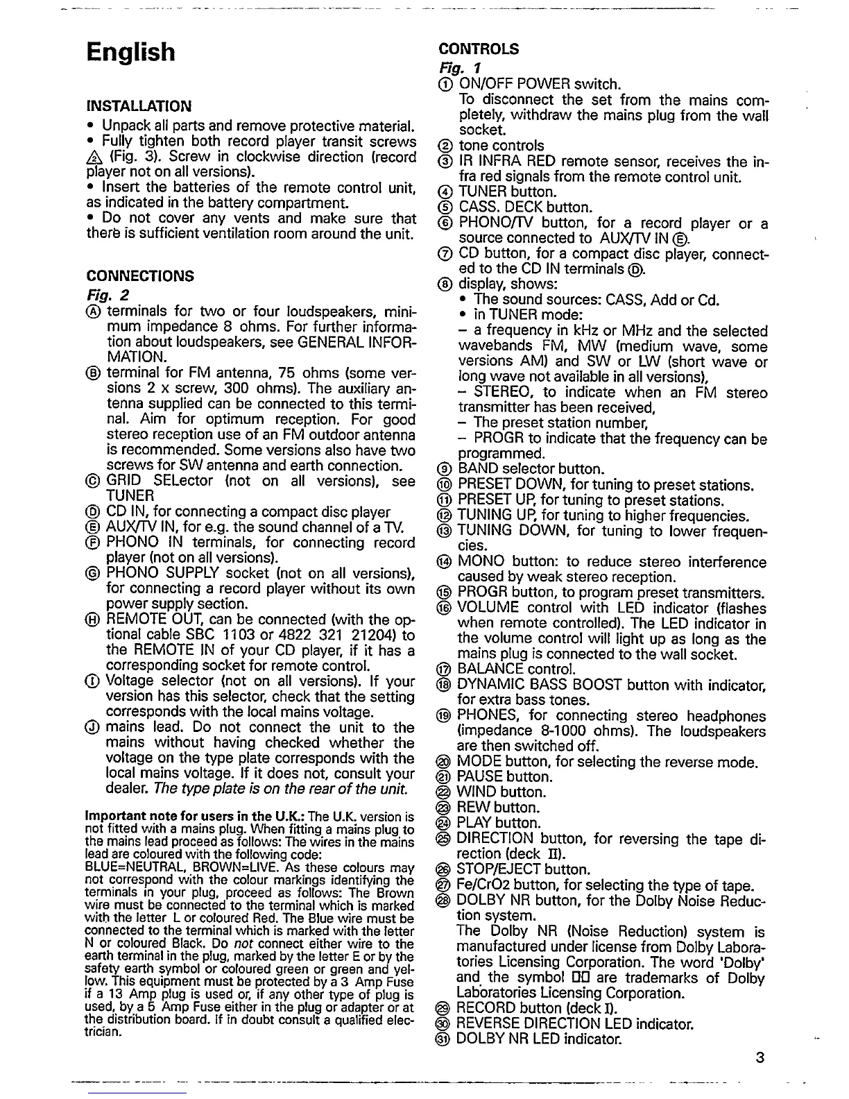 Philips AS9513 - Installation; Connections; Controls