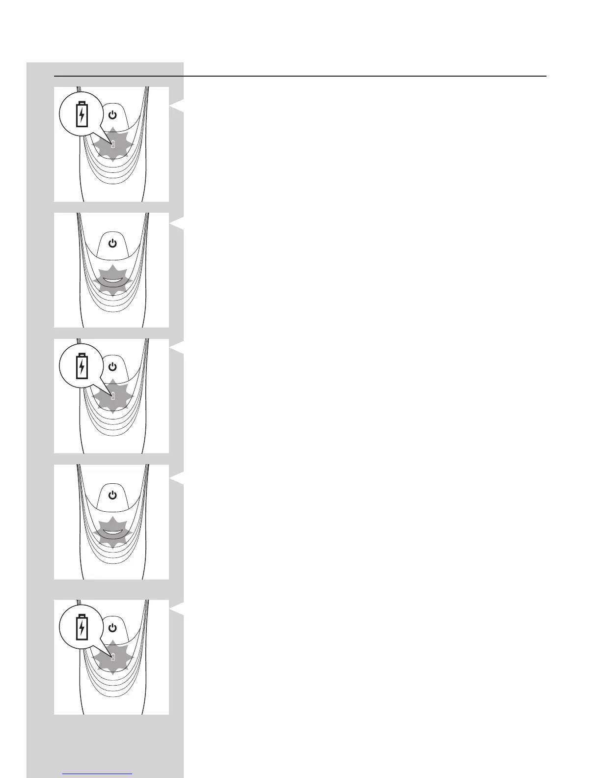 Når du slukker for shaveren, blinker det orange batterisymbol et par
