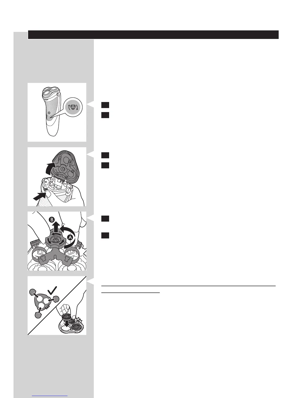6 Entnehmen Sie die Scherköpfe, und setzen Sie neue Scherköpfe in die