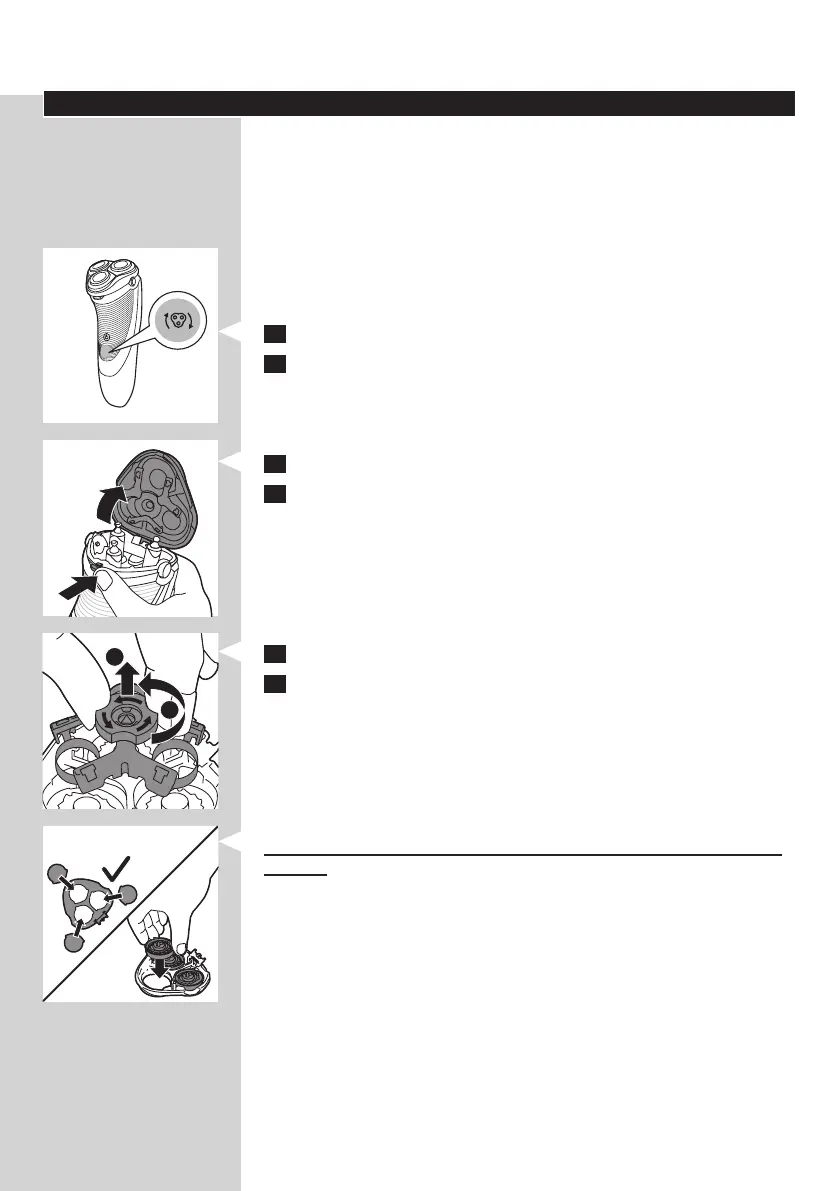 6 Remove the shaving heads and place new ones in the shaving unit.