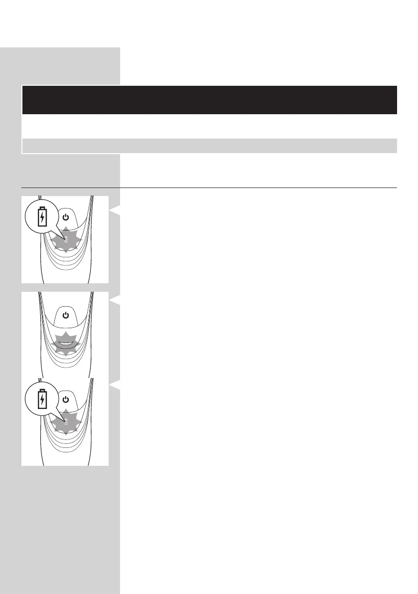 restam apenas 5 ou menos minutos de barbear), o símbolo da bateria