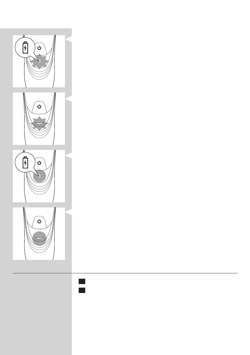 Obs! Efter ca 30 minuter slocknar batterisymbolen för att spara energi.