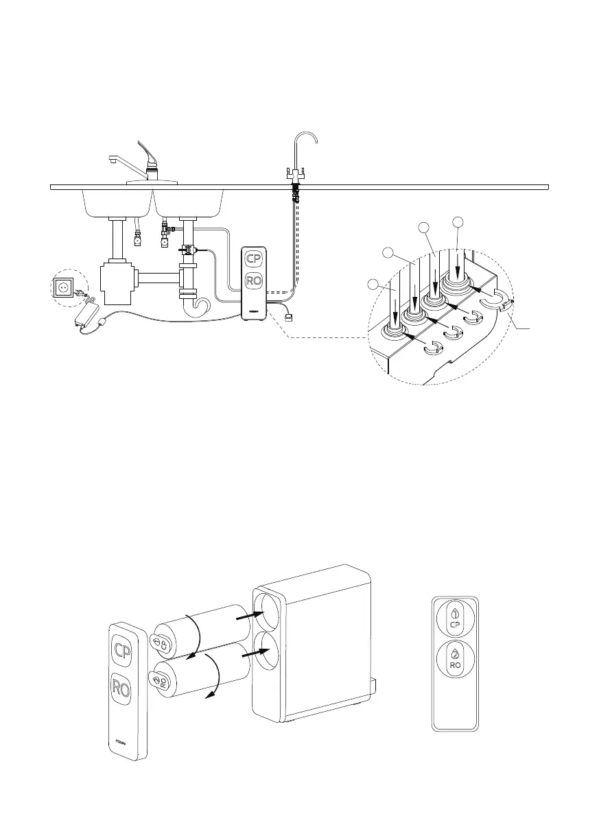 f. Mueva el sistema a su espacio en el armario debajo del fregadero y coloque el
