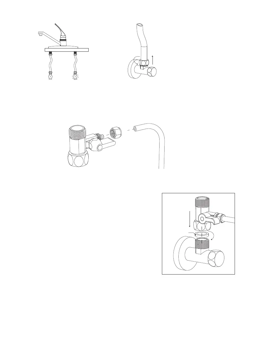 b. Наденьте гайку трехходового шарового крана на полиэтиленовую трубу 1/4" (6,35 мм)