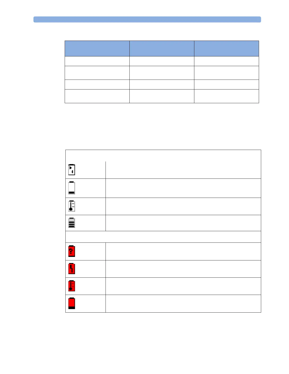 If a problem is detected with the battery, these symbols are displayed. They may be accompanied by an