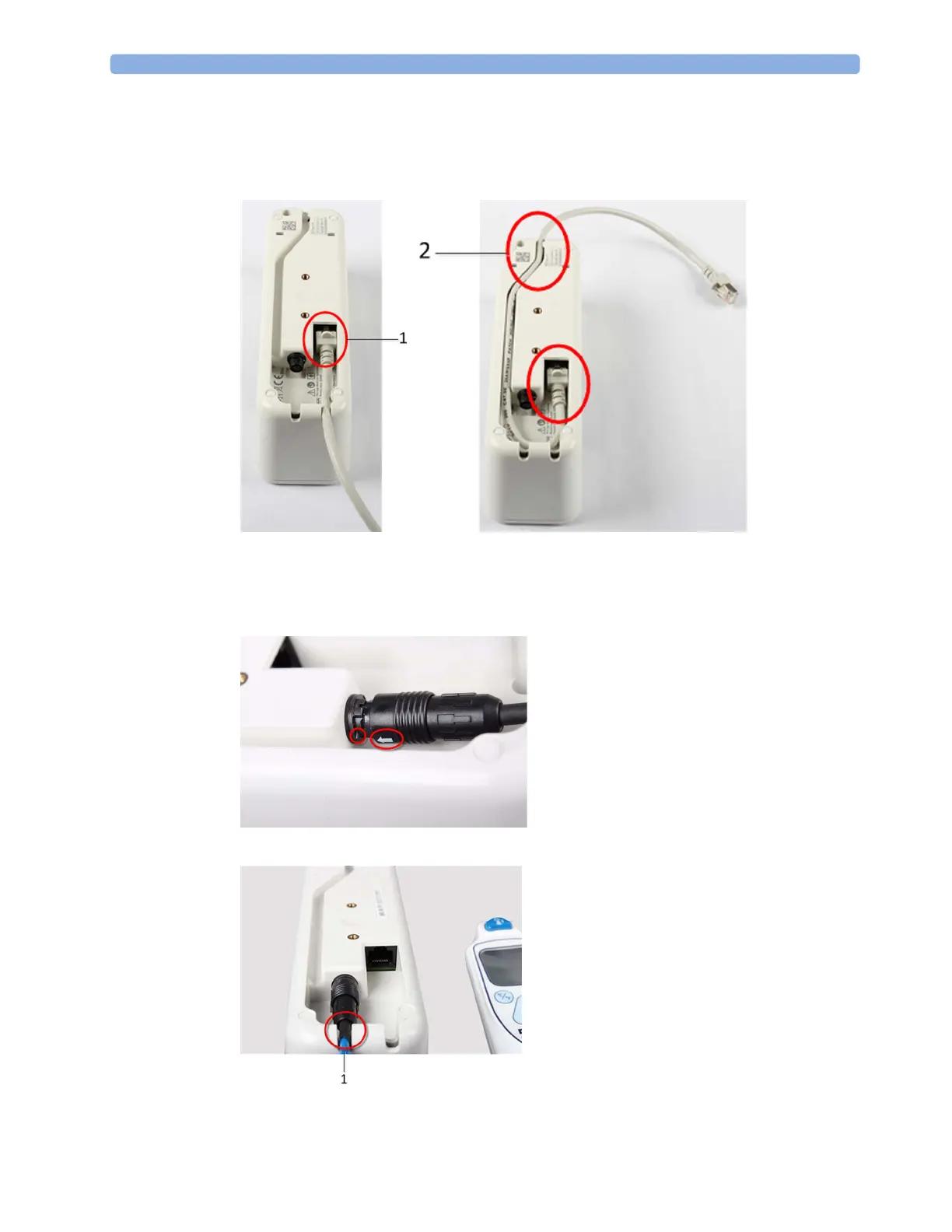 3 Insert the thermometer cable into the base station by aligning the white arrows on the cable