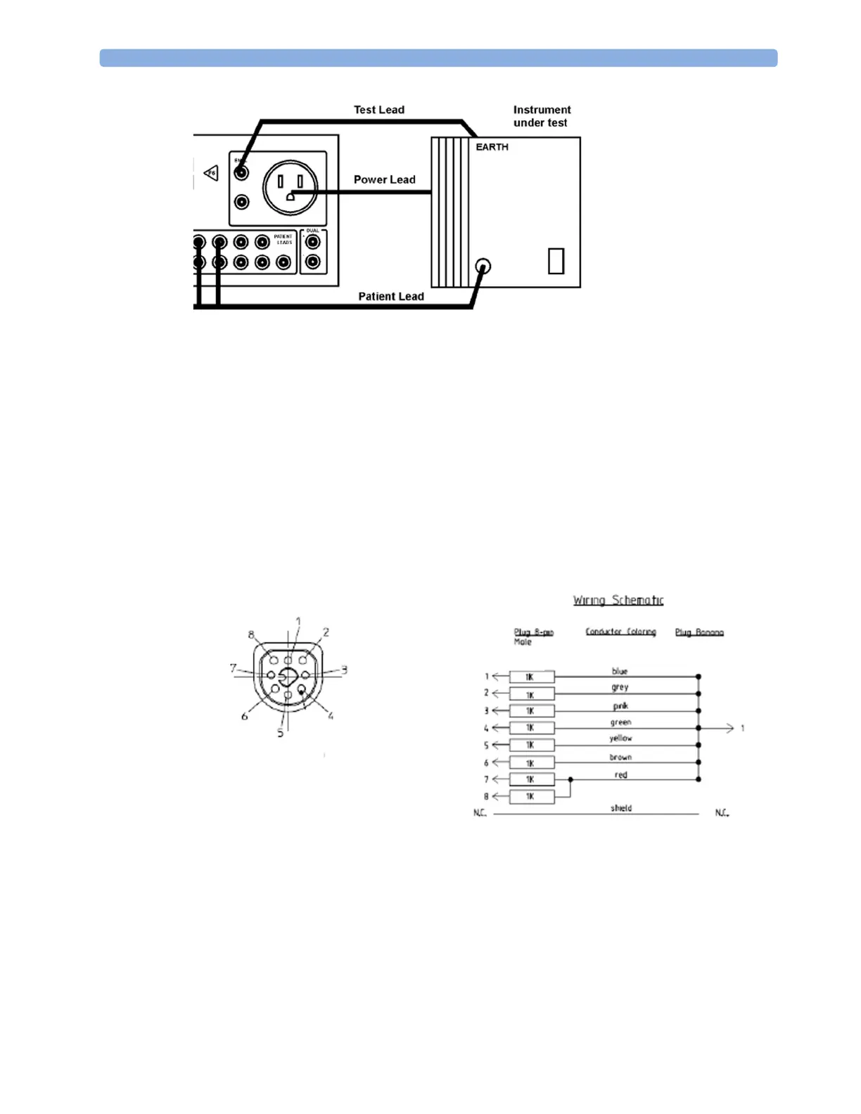 The following graphics provide schematics of safety test (patient lead) adapter cables which can be