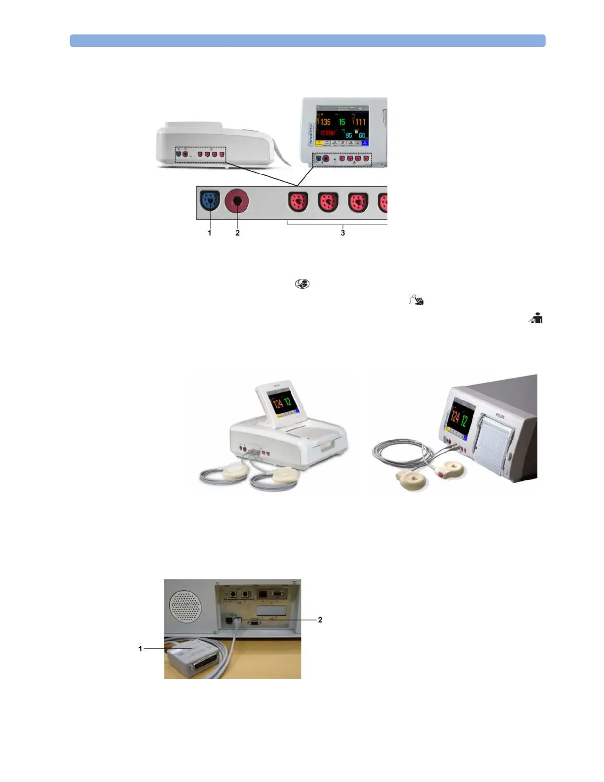 rear of the monitor, as an alternative to using one of the fetal sensor sockets at the front.