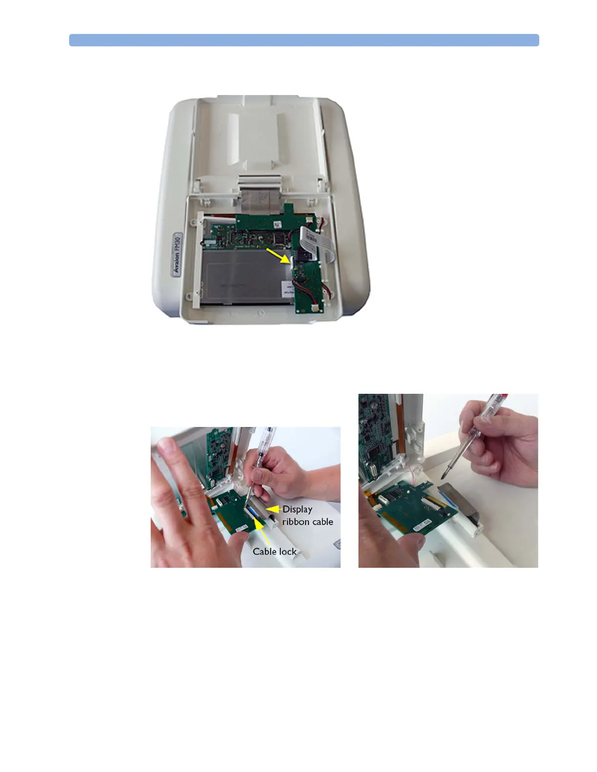 7 Disengage the cable lock for the display ribbon cable on the display assembly side using a small,