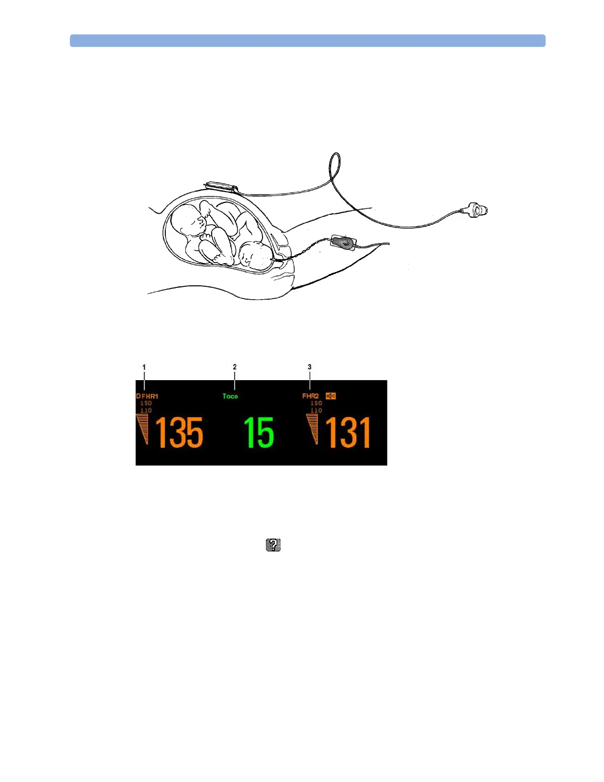 FM30/50 Monitor one twin using the procedures described in the Chapter “Monitoring FHR and FMP Using