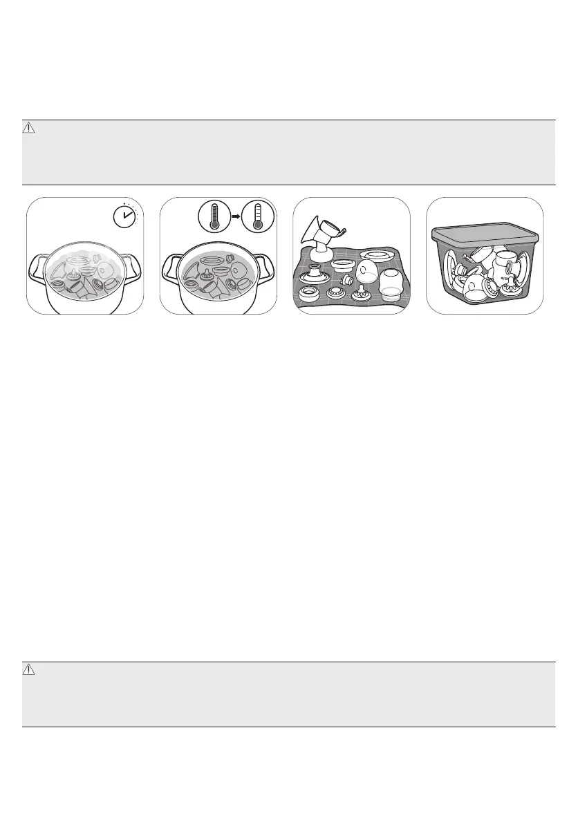 избежание ожогов приступайте к сборке молокоотсоса только после остывания