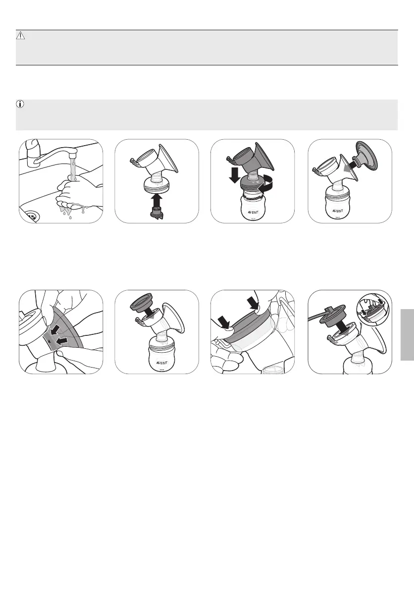 прикасаться к деталям молокоотсоса и груди, чтобы предотвратить их загрязнение.