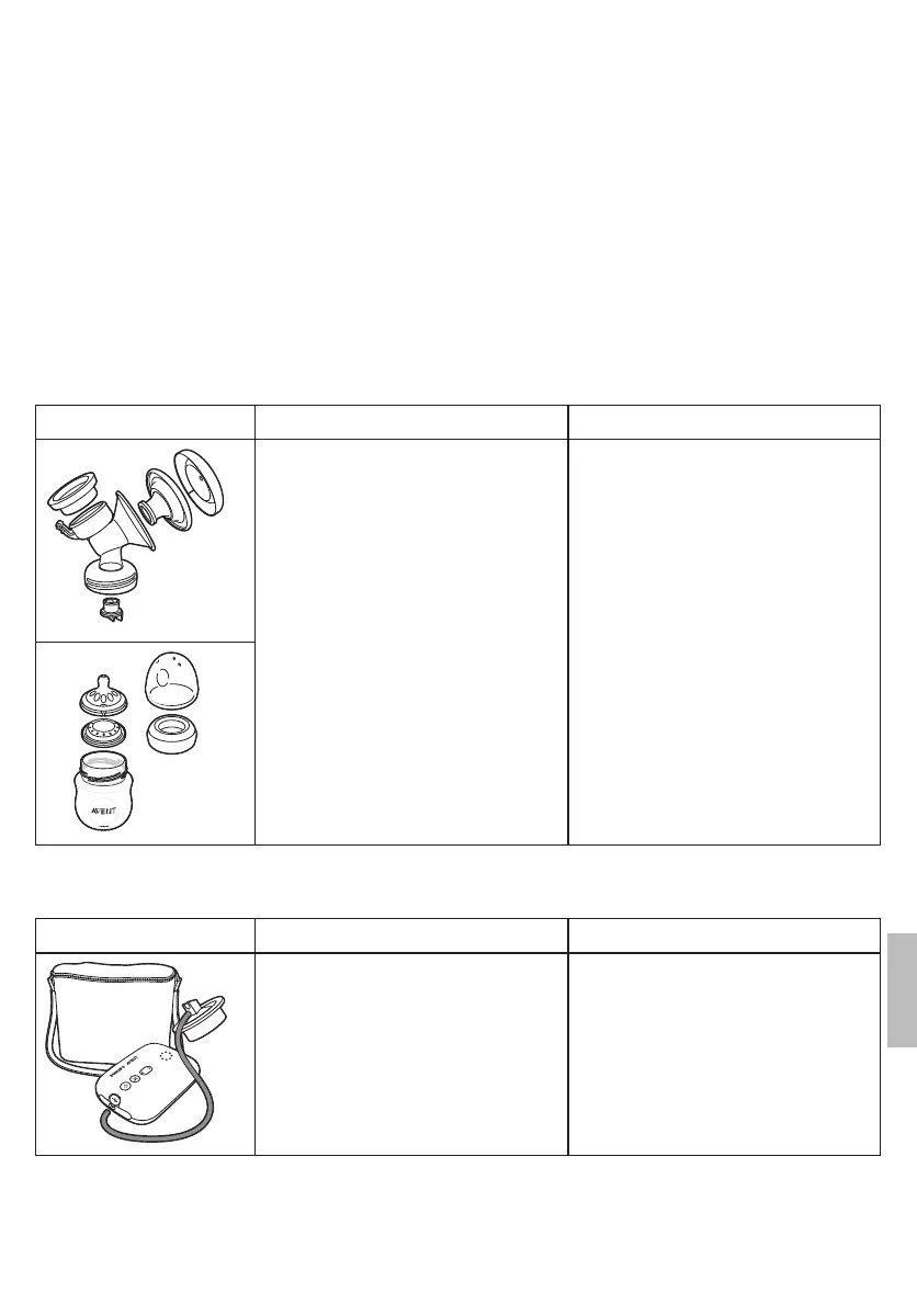 Келесі бөлшектер емшекпен және емшек сүтімен байланыспайды, оларды төменде сипатталғандай