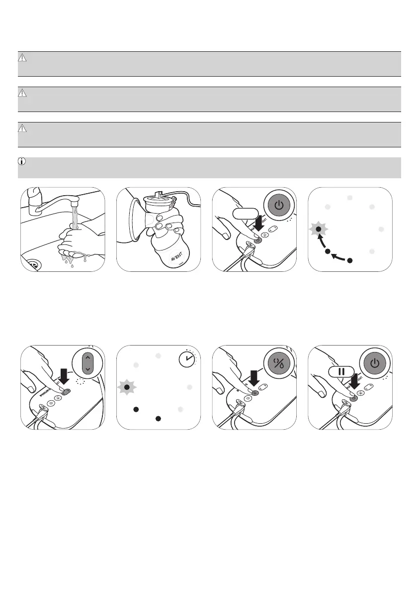 Varování: Pokud odsávání začne být velmi nepříjemné nebo bolestivé, přestaňte odsávačku používat a