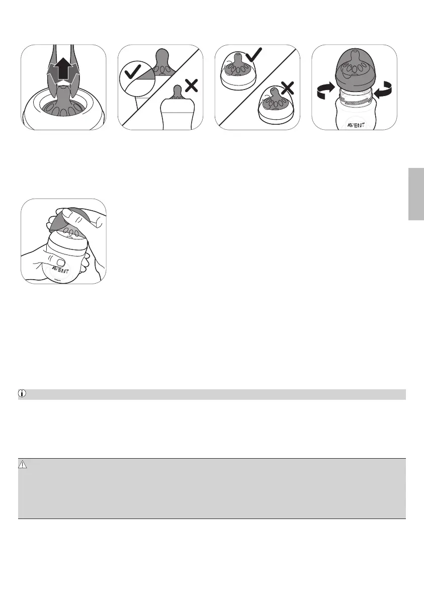 pojemnik bez pierścienia mocującego, smoczka i nasadki. Zawsze wymieszaj podgrzany pokarm, aby