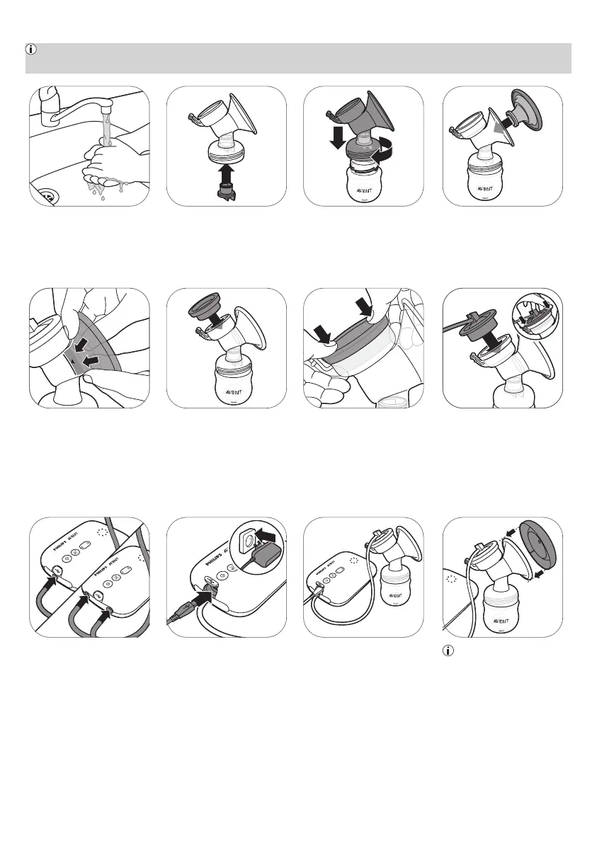 Notă: Așezarea corectă a pernei, a diafragmei din silicon și a tubului din silicon este esențială pentru capacitatea