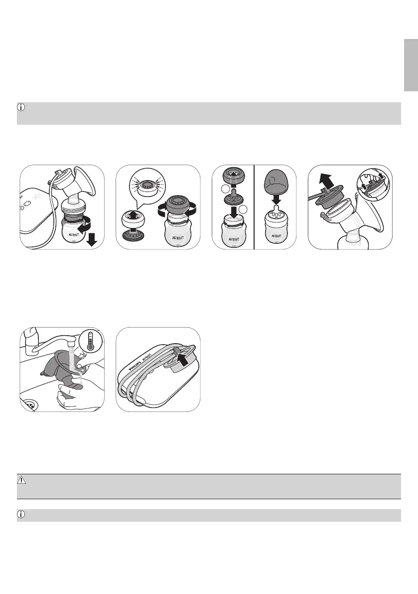 Warning: Refrigerate or freeze expressed milk immediately or keep it at a temperature of 16-29 °C